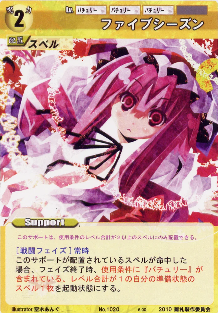 - Special: [Battle Phase] If your Leader has the "Scarlet Devil Mansion" Designation, the Spell equipped with this Support gains +1 AV if that Spell requires your Leader.