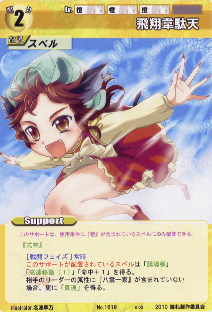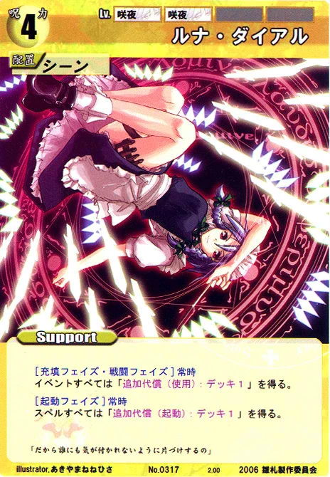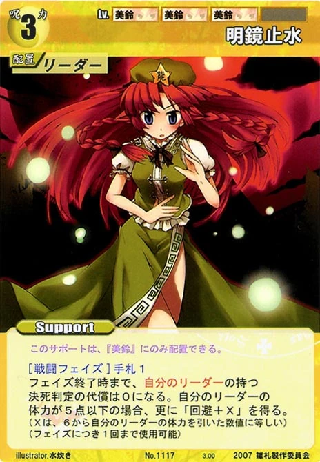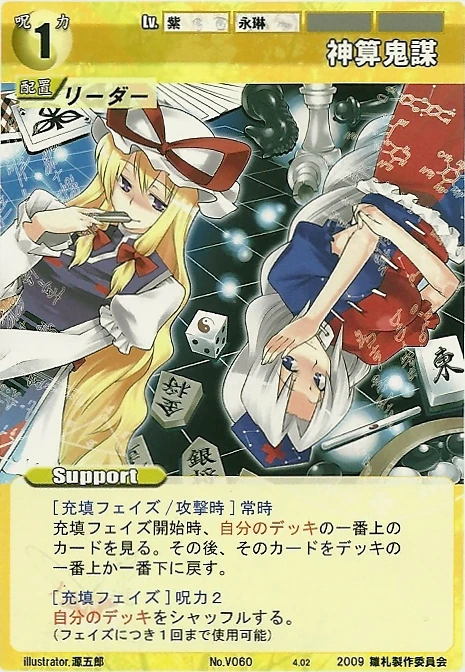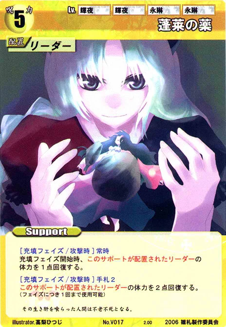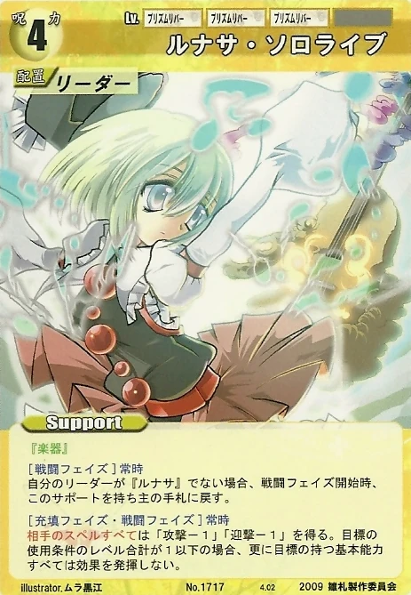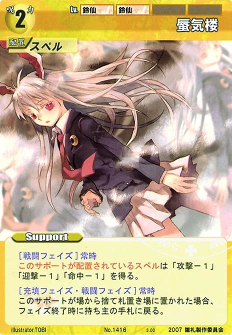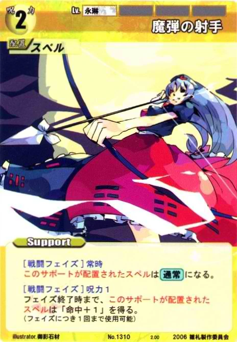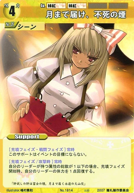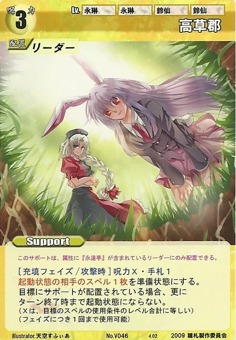 - Special: [Battle Phase] If your Leader has the "Eientei" Designation, the Spell equipped with this Support gains +1 IV if that Spell requires your Leader.