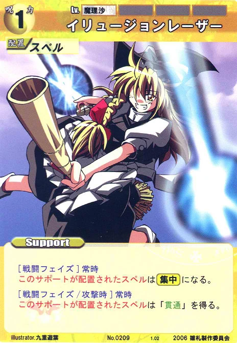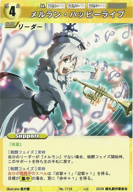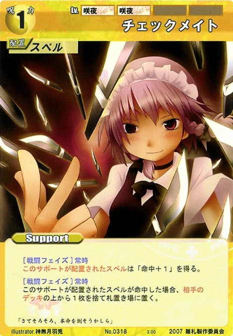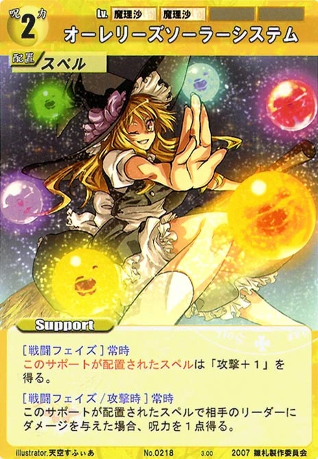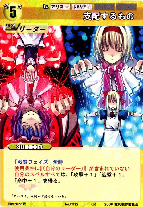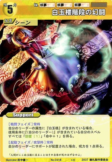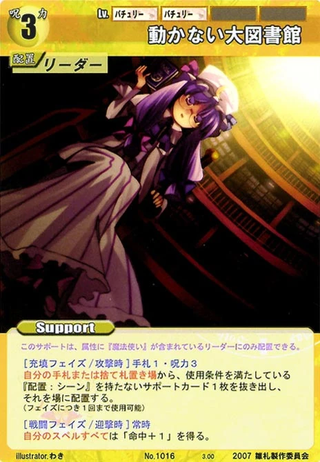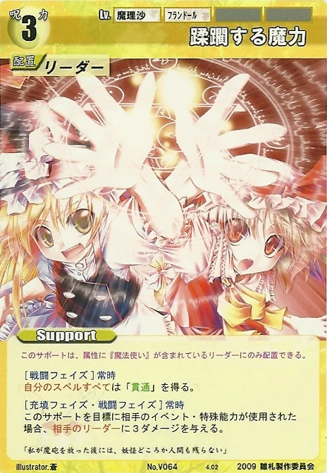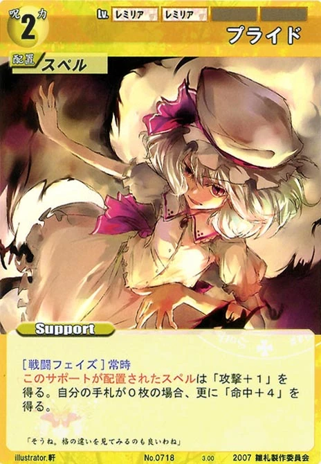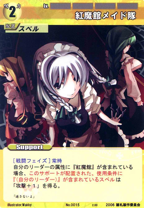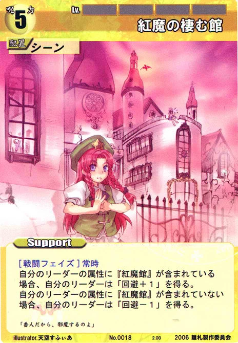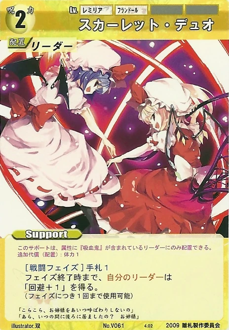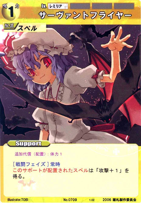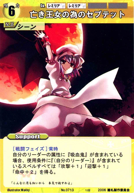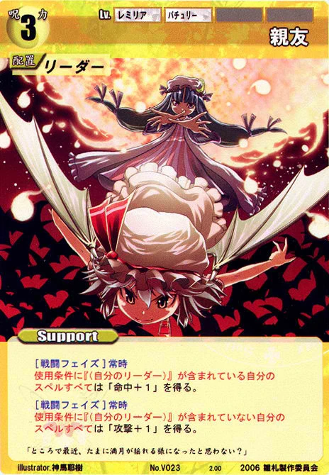 - Special: [Battle Phase] If your Leader has the "Scarlet Devil Mansion" Designation, the Spell equipped with this Support gains +1 AV if that Spell requires your Leader.