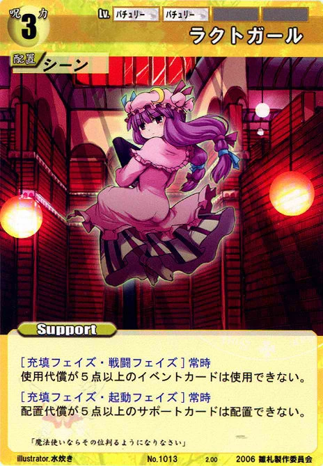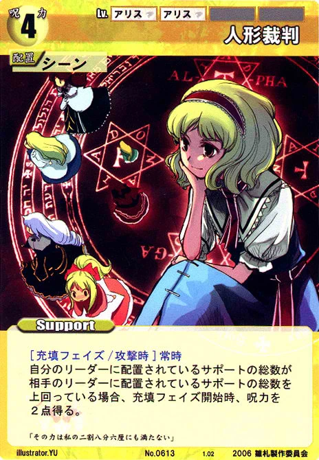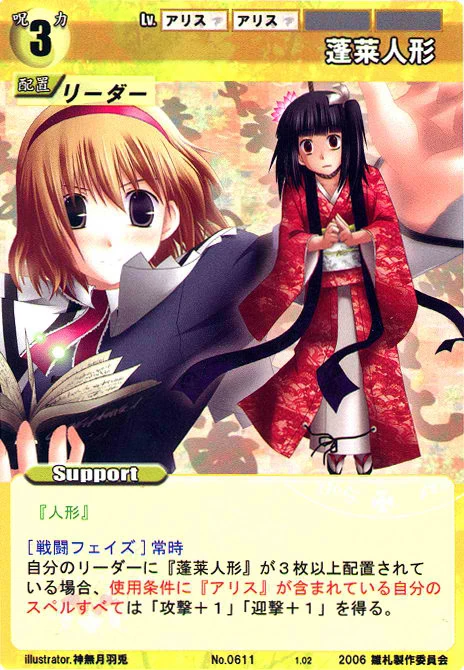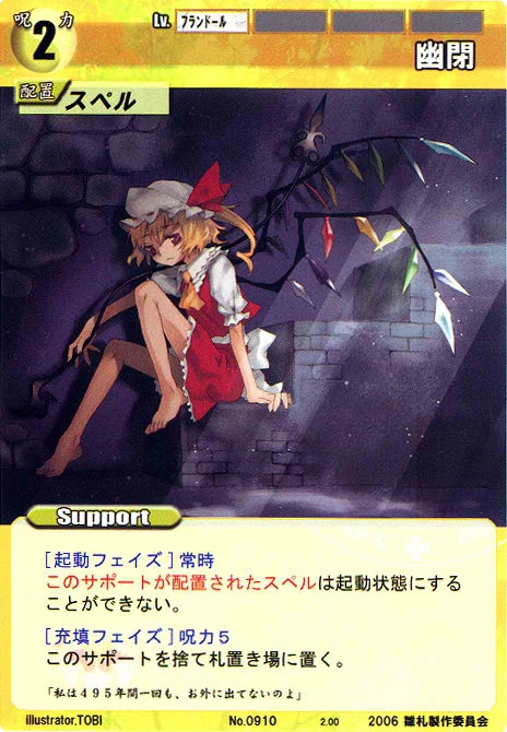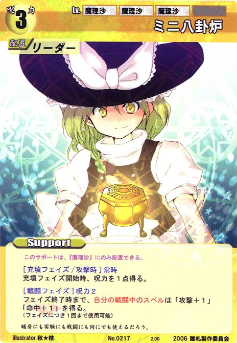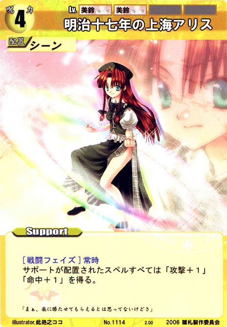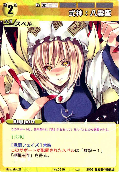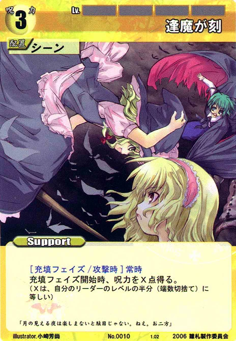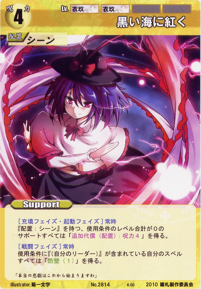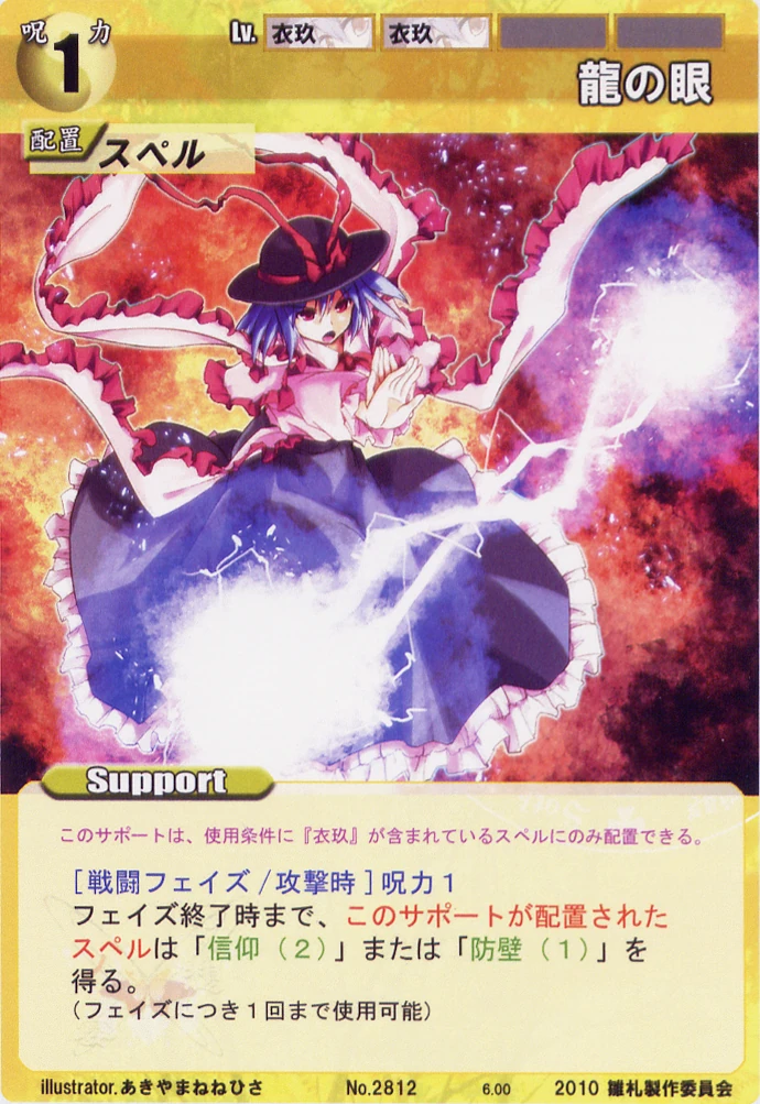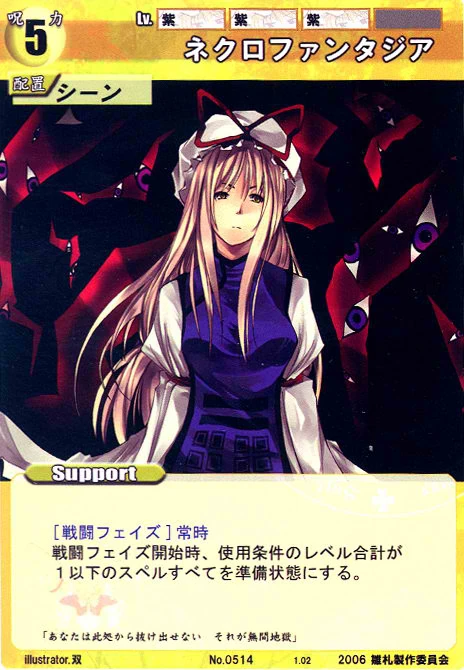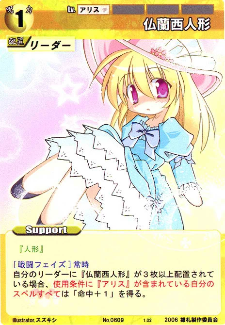 - Special: [Battle Phase] If your Leader has the "Scarlet Devil Mansion" Designation, the Spell equipped with this Support gains +1 AV if that Spell requires your Leader.