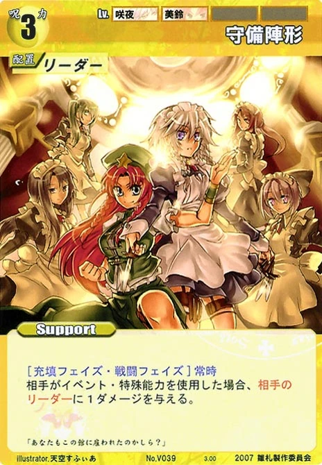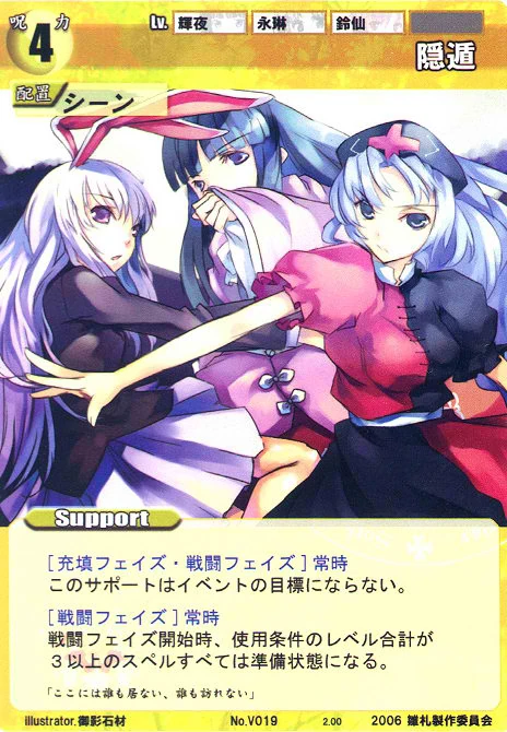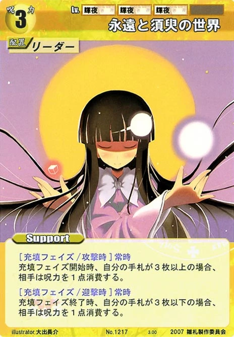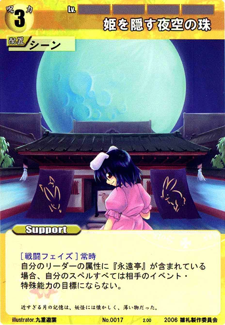 - Special: [Battle Phase] If your Leader has the "Eientei" Designation, your opponent's Event Cards and Specials cannot target any of your Spell Cards.