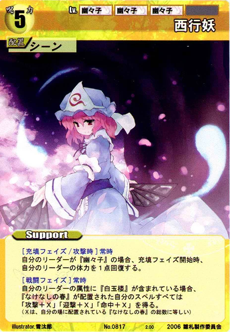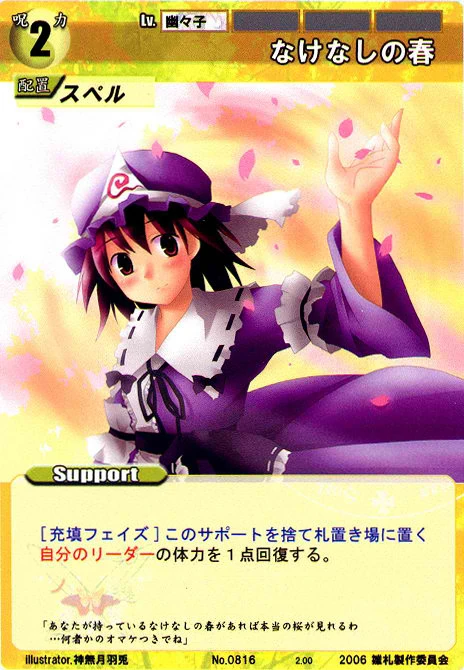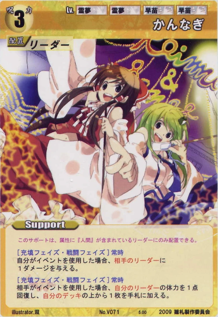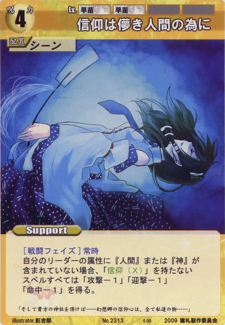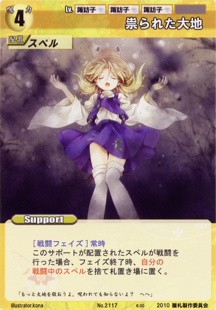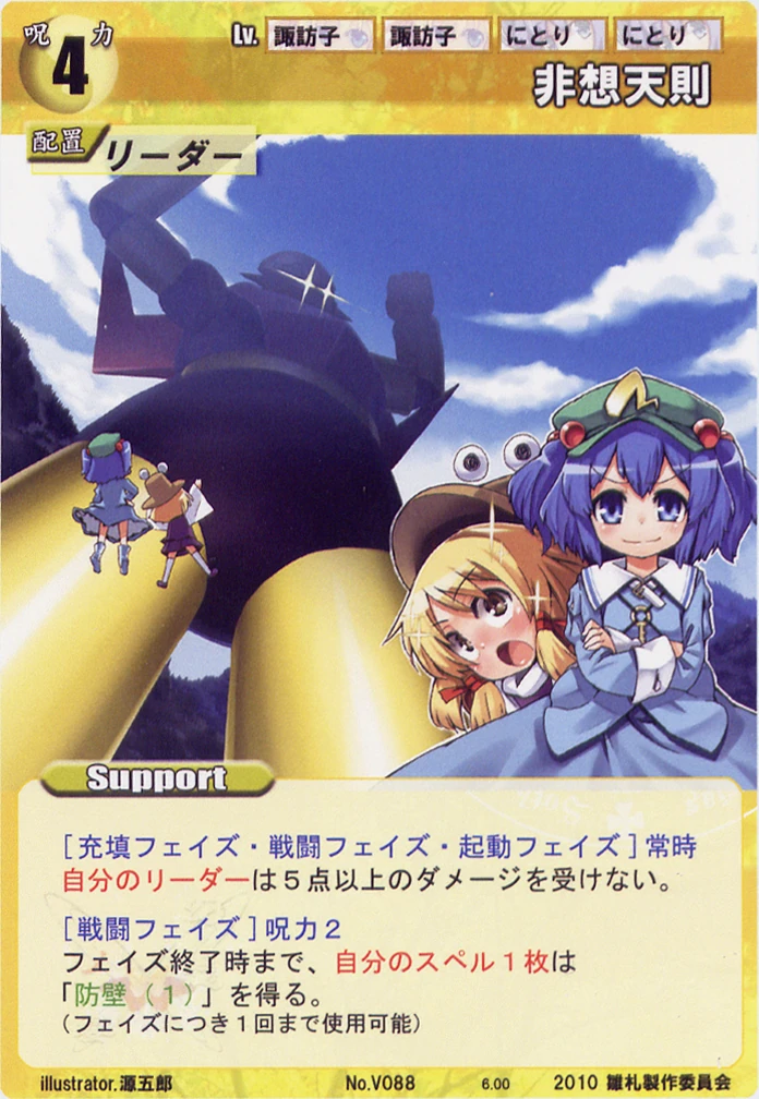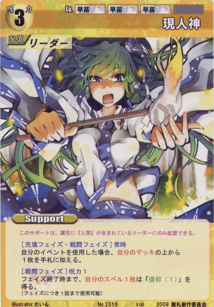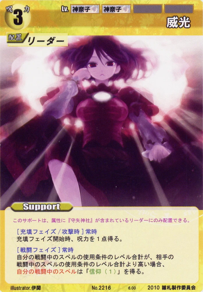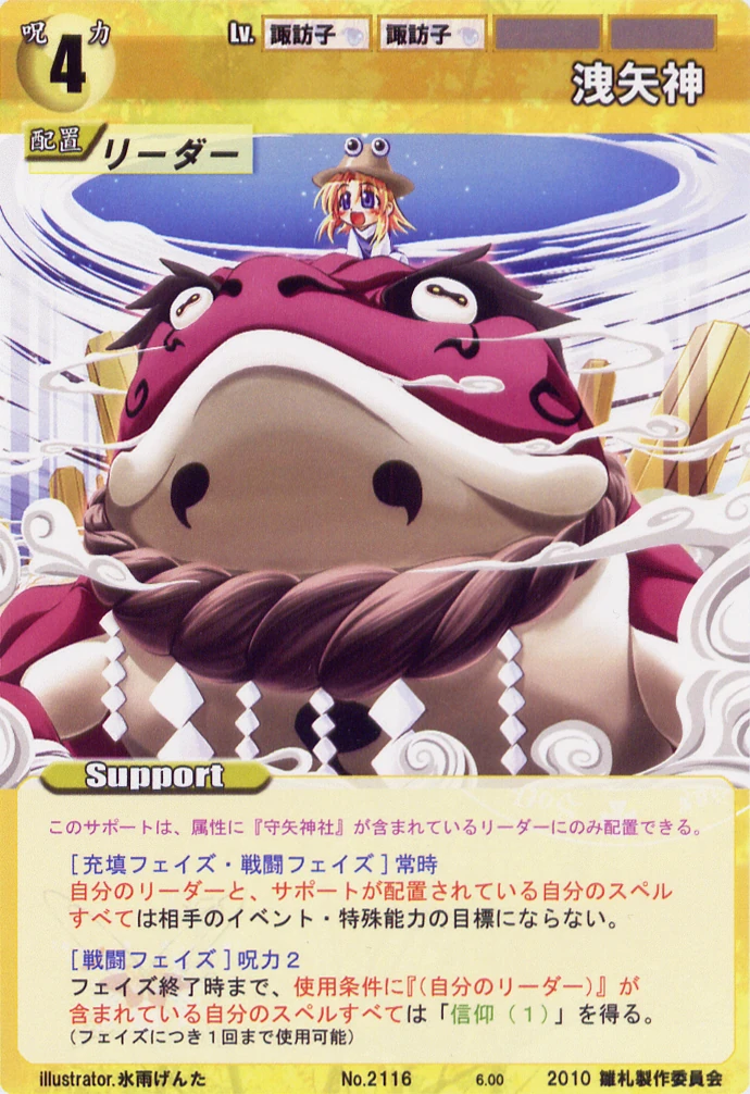 - Special: [Replenishing Phase/Attack] While your Leader has the "Moriya Shrine" designation, gain 2 SP at the start of the Replenishing Phase.