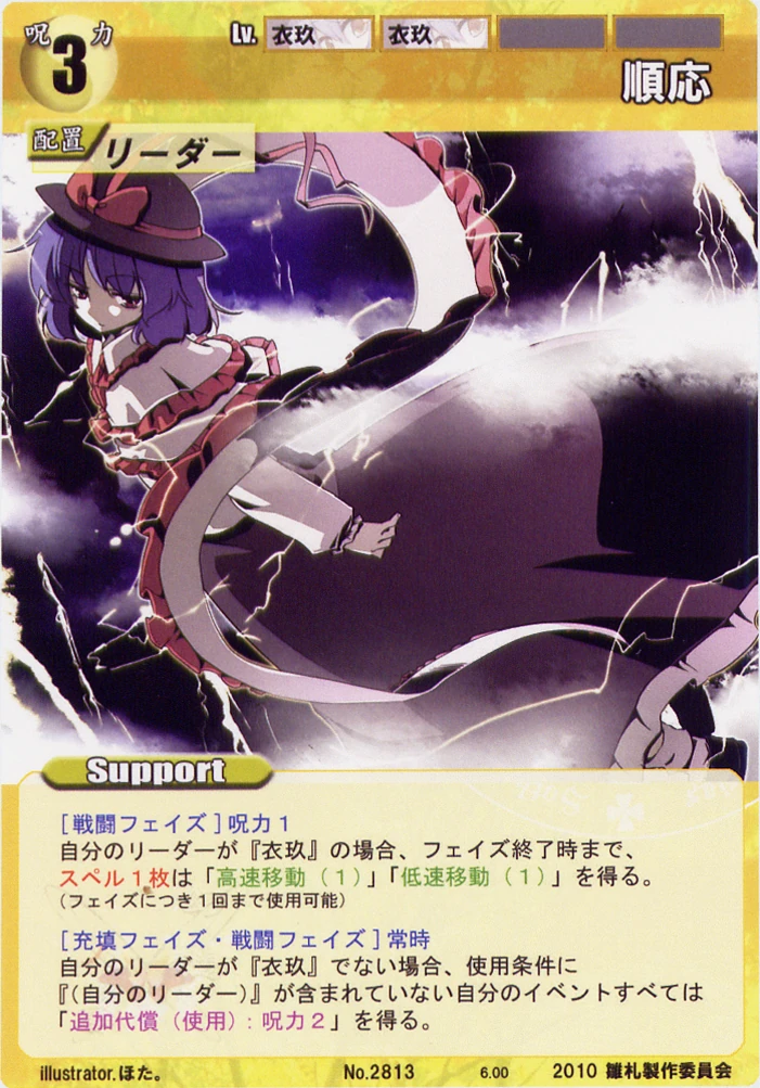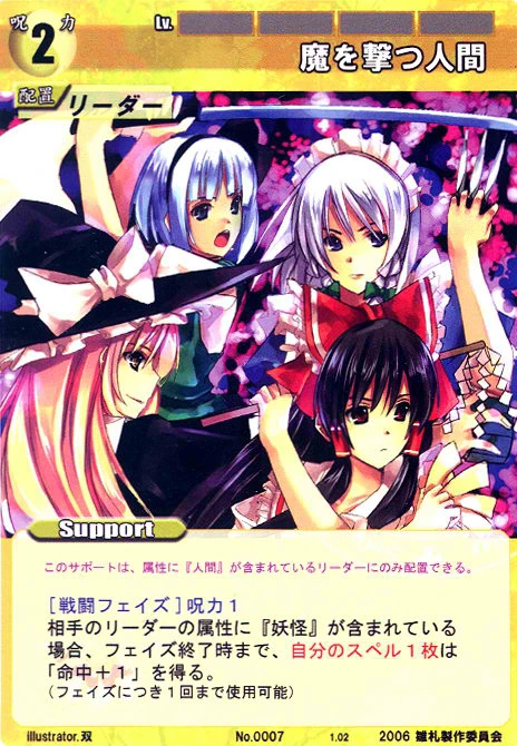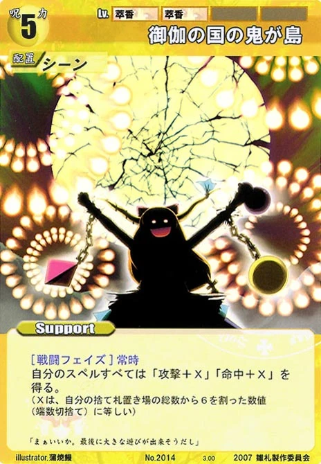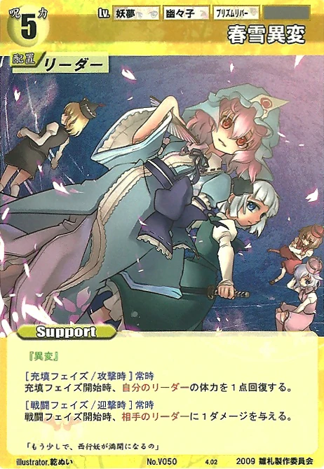 - Special: [Battle Phase] While your Leader has the "Youkai Mountain" designation, all of your Spells that require your Leader gain +2 HV.