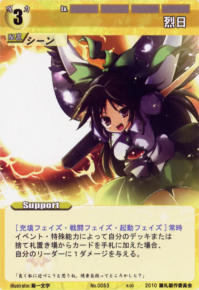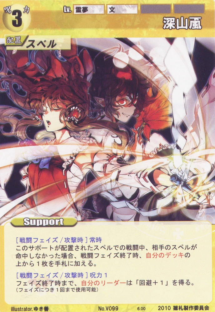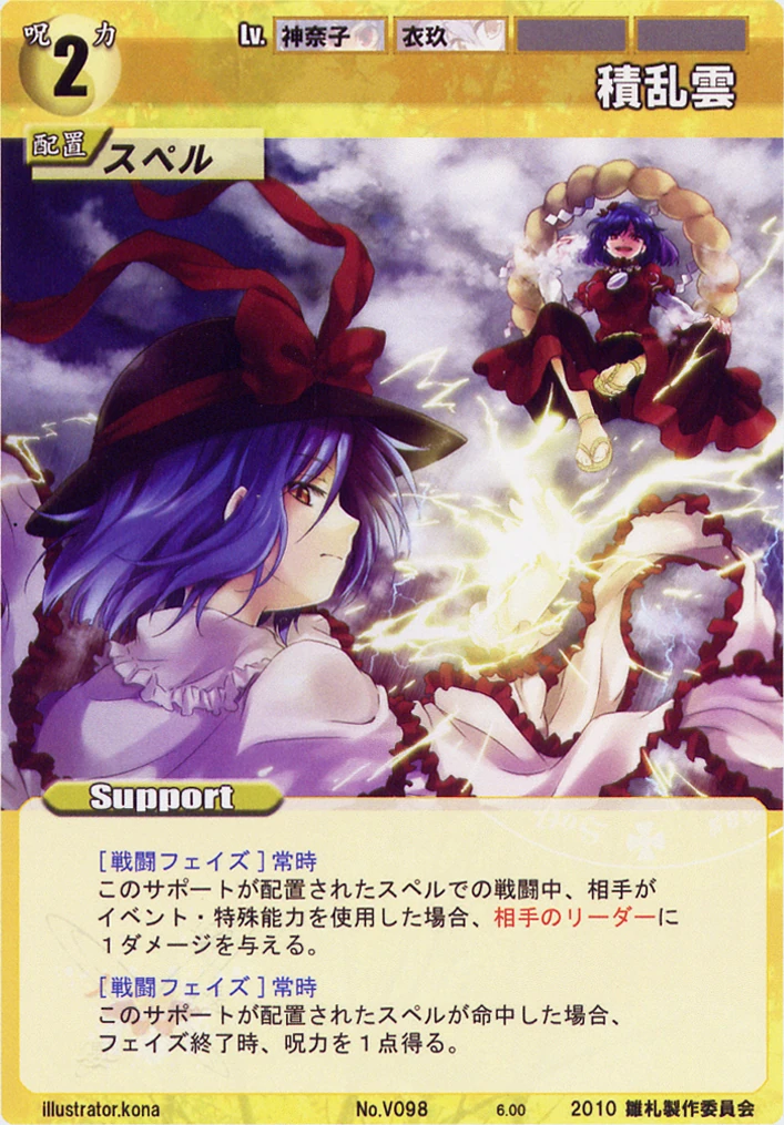 - Special: [Battle Phase] While your Leader has the "Youkai Mountain" designation, all of your Spells that require your Leader gain +2 HV.
