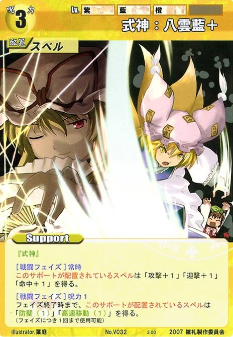 - Special 2: [Replenishing or Battle Phase] If your Leader has Yakumo Family in her Designation, all of your equipped Supports in your field cannot be the target of your opponent's Events or Specials.