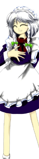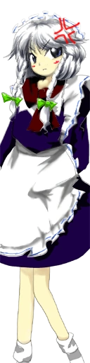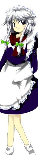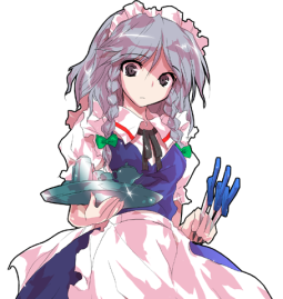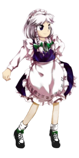 Works as the head maid of the Scarlet Devil Mansion. Her cool demeanor makes it hard to tell, but she actually acts slightly airheaded.