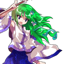 ○山の新人神様 種族:人間 妖怪の山にある守矢神社に住む巫女さん。妖怪退治は不慣れ。 普段は神様と妖怪達に囲まれて暮している為、人間の話し相手が欲し 神奈子に言われて妖怪退治の真似事をしてみたり……幻想郷に慣れよ | |
