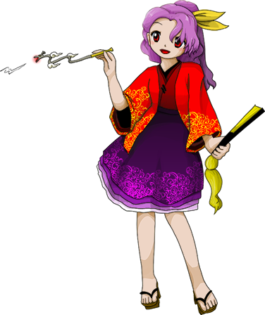 Sannyo Komakusa is the Stage 3 midboss and boss of Touhou 18, Unconnected Marketeers.