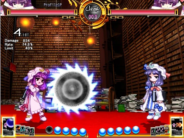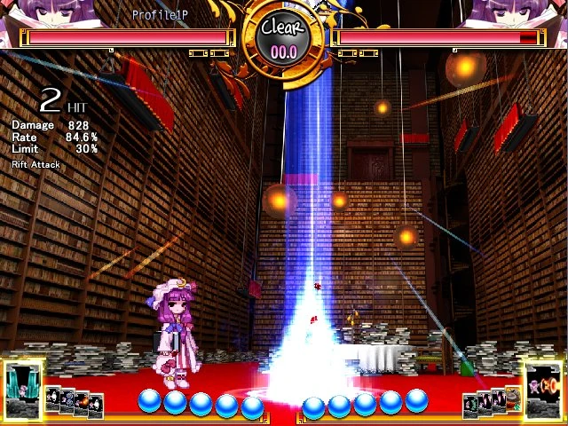 Default 214B/C. An attack with high speed and penetration that can be delayed. C opens a blind spot in front of Patchouli but gives significant angle to the blades in order to attack airborne enemies. Levels increase the amount of blades. After Level 1, missed blades will redirect themselves towards the enemy if one connects.
