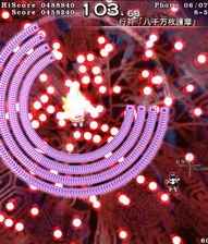 | Comment: | Pretty self explanatory. Get in a gap and ride it slowly upwards, charge and take photos, in the space created by the photos drop down and reset your position. After Yuyuko tosses up the fan and starts firing aimed bubbles, you'll need to switch to the gap line to your immediate left or right as well. Starting the bubbles is time based, not photo based, so take your shots as quickly as possible. |