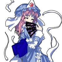 Yuyuko from SWR with fan. This file is copyrighted. It will be used in a way that qualifies as fair use under US copyright law. -