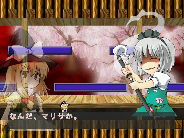 It is currently unclear what exactly is going on in Meiling's design (possibly based on Yoshi), but her battle is a take-off of the Lemmy Koopa/Wendy O. Koopa battles from Super Mario World.