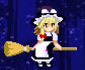 Press (or, better yet, mash) Z to fire yin yang orbs: this is how you will deal damage. Unfortunately, rather than pull any of Tatanka's attacks from Super Mario Land (which would be piss easy for a Touhou expert like yourself to dodge), Kaguya uses, in proper order, horizontally-modified versions of her 5 Impossible Requests from Imperishable Night, and your hitbox isn't exactly intuitive. Note bullets and lasers have absolutely no dead space, so if any part of it touches your hitbox, you're dead. It helps if you use your broom as a guide for your hitbox. For the Dragon's Necklace, the largest gaps between lasers can be found if you hug the left wall. Buddha's Stone Bowl isn't terribly hard to avoid as the lasers take long enough to phase in for you to find a safe place, and the fuzzies she uses to fire lasers do not function like unfocused familiars so your shots will go right through them and damage Kaguya. Fire Rat's Robe is where it start to get difficult. Move up and down quickly and stream the lasers as best you can so you can actually move between them rather than letting them trap you agains the ceiling or floor, and don't forget to avoid the slow-moving fireballs. Swallow's Cowrie Shell is not difficult to avoid if you hug the left wall, but the fuzzy familiar Kaguya shoots out angles his lasers so you'll have a hell of a time shooting her back, and the time gap between fuzzy familiars is not long at all. If you're feeling daring, put yourself directly on top of the familiar (it doesn't have a hitbox) inside the ring of lasers it fires. Your hitbox is small enough to easily dodge between the bullets from Kaguya. Finally, Rainbow Danmaku's oval shots can still be streamed as before, but you have much less room to work with and sometimes they'll aim at you for a little longer than you expect. Also, the round rainbow shots are harder to avoid simply because their hitboxes are a lot bigger than in IN. Kaguya goes through her spellcards based on how much damage she's taken - the further down the list you are the more damage you've dealt. I don't know exactly how many shots it takes to finally bring her down, but when you do, give yourself a pat on the back, because you earned it.