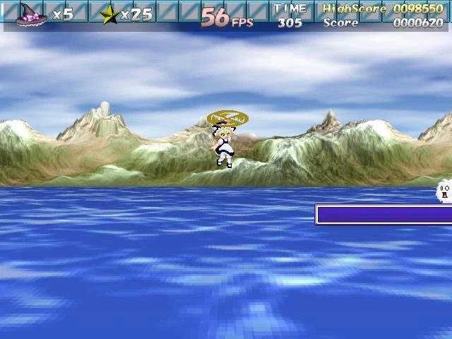 Work your way to this area. Make sure you do not permanently kill the blue fuzzes (with Rumia Yoshi, Yin Yang balls, or a drill). Bounce off this blue fuzz to get on top of the level.