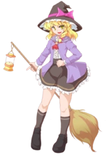 The ordinary witch living in Gensokyo. She has a habit of collecting things. To Marisa, the fact that the Morning Star was shining so brightly was not that serious of an event. More then that, the meteorite which had fallen within her reach pulled strongly on her interest as a collector of rare articles. With Gensokyo cut off from the outside world, and her vigorous thirst for knowledge, objects that sometimes come in from the outside world were like a gift from God. [In comparison to that, this was surely a great incident that would shake Gensokyo.]