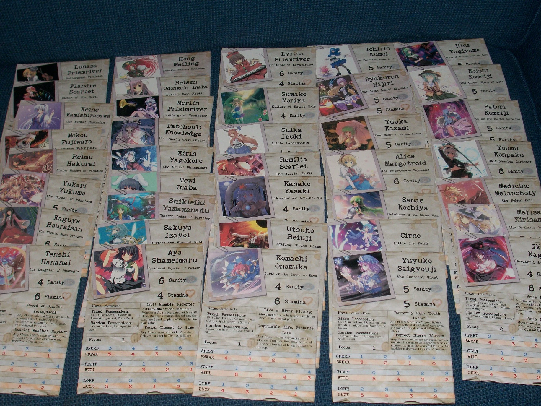 In this modification of Arkham Horror, the traditional Investigator cards are replaced with investigators from the Touhou cast. Likewise, The traditional Ancient One nemesis card is replaced with a nemesis card featuring one of the characters, representing her corruption by the Outer Gods.
