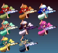 Colorful Rain - 236B/C (air) Flavor Text: Gathers chi from the surroundings and disperses it around. It should have dispersed uniformly if one's mind is calm, but because she's always thinking about dinner and such, the paths are random. Meiling spins about in a quick circle and becomes surrounded briefly by a rainbow whirlwind as rainbow shards are shot up into the air. They travel into the air and then arc down towards the ground on both sides of Meiling. C version makes the shards go farther. Damage is fairly random. Usable in the air, which fires shards directly downwards and preserves momentum while Meiling is spinning. Each shard drains 1/5 an orb on block. Has possibilities, but the recovery and speed at which the shards vanish make using this move difficult.