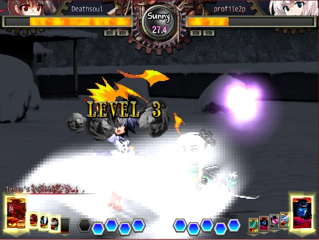 A swarm of crows mobs the enemy. The crows obey the crow tengu, but the actual degree of control fluctuates according to her own power and popularity of the birds--- we'll leave that to your imagination.