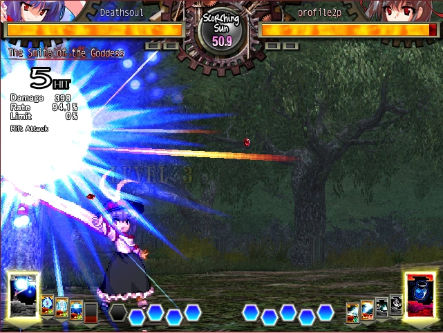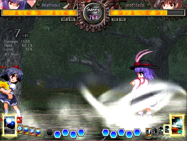 Uses her veil to delay the attack of the opponent. If she presses the guard button, she can expend one card in her hand to counter the attack. If she has enough cards, she can enter defense mode.