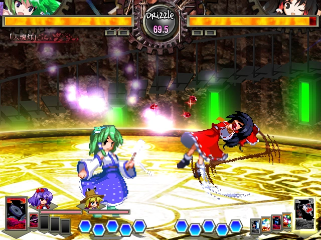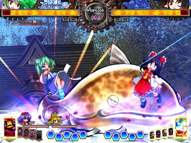 | Translation: | "A youkai forged sword that cuts away hestition, when used, the current action will be interrupted while a dash movement will begin, an excellent card for covering large amounts of distance quickly". (Effect: Cancels your character's current action, reducing delay. Uses up all remaining spirit orb energy. Your character dashes when used). |