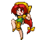 Wears green and yellow clothing and carries a baton. Please give her your kindness and raise her.
