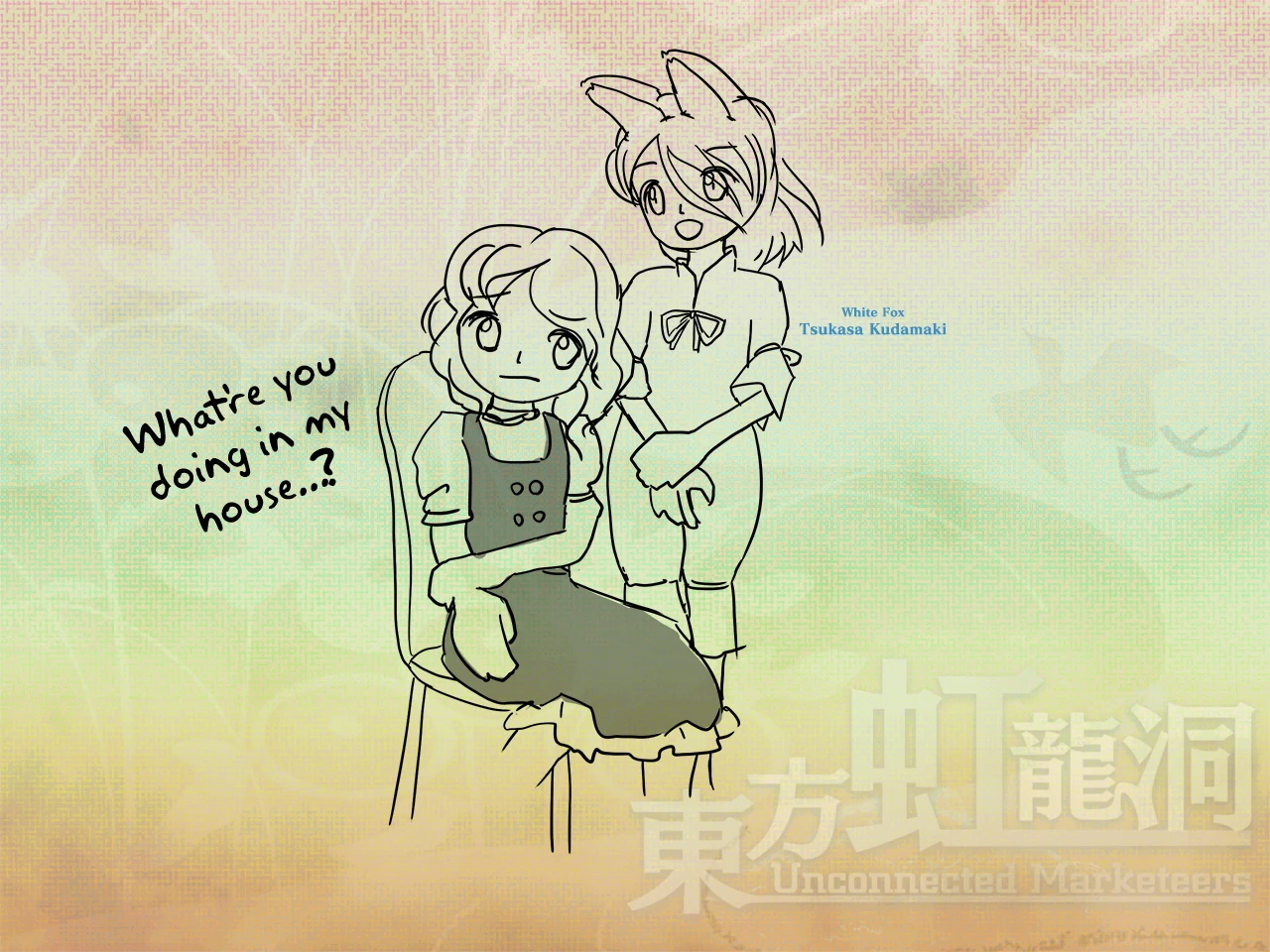 Tsukasa "...huh? You went to Miss Chimata after discarding all your cards?" Marisa "It was an accident! I picked that card by mistake!" Tsukasa "The marketplace god wanted to gain faith through monetary exchange... You essentially denied that even without thinking about it. And now Miss Chimata is bedridden..." Marisa "What? Bedridden!?" Tsukasa "Yep, she seems to be having nightmares of a robber who can't even engage in basic commerce." Marisa "A robber is a bit of an overstatement I think. Oh yeah, you're that great tengu's servant right? What business do you have with me?"