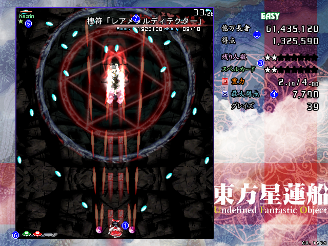 - Graze: the number of enemy shots that have grazed your hitbox during the game