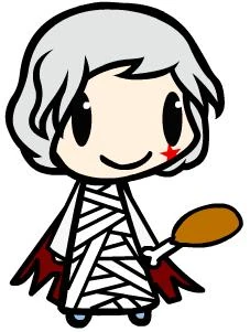 She has an edited version of Ichirin's hair, Male Shingyoku's sleeves and a red cape. The star on her cheek finally has a meaning... she is being controlled by an undead master, being Wayuhime. It's like Yoshika's seal. I used the mummy body to hide all of her disgusting rotting flesh. Why is she holding a chicken? Because she is like a Pudge, "UGHGHGHGHGHGHGHGHG, FRESH MEAT!!!" Alright, she doesn't look like the prettiest character, but she's an abomination, DEAL WITH IT!