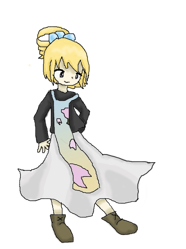 Appearance: I drew it above. The only thing I think needed mentioning is that that thing in the back of her head is drill hair. It gives her a unique, eccentric charm; not many people have this style of hair.