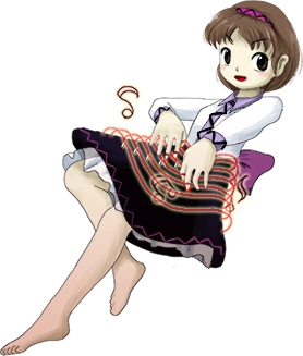 Yatsuhashi Tsukumo is a Tsukumogami, transformed from a Koto. She is the younger sister of Benben Tsukumo. She appears as the Stage 4 Mid-Boss, Boss, and Extra Stage Mid-Boss along with her sister. They are not biological sisters -- they only call themselves sisters since they were "born" as tsukumogami at the same time.