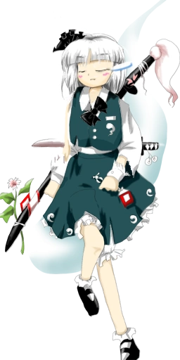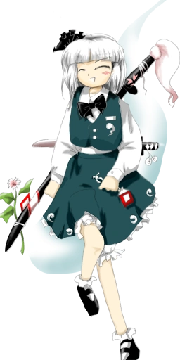 Youmu arranges the garden with two swords: Roukan-ken is a longer sword that has the power of killing ten ghosts; Hakurou-ken is a shorter one that can slash the human's confusion.