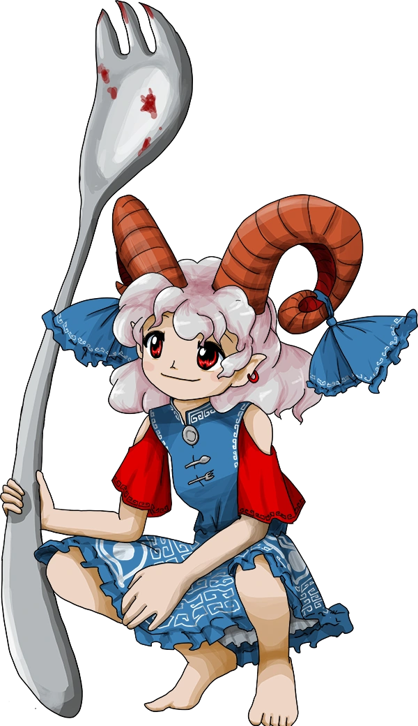 Yuuma Toutetsu (饕餮 尤魔 Toutetsu Yuuma) is the leader of the Gouyoku Alliance under which the eagle spirits serve. She is briefly mentioned by Saki Kurokoma in the Extra stage of Wily Beast and Weakest Creature before making a proper appearance as the main antagonist and final boss of Touhou Gouyoku Ibun.