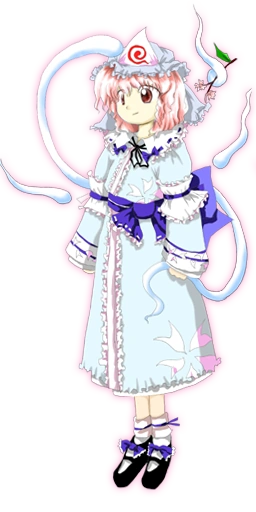 Yuyuko is the ghost 'princess' of Hakugyokurou, the netherworld of the "formerly-living", but was once a living human. Long ago, after her death from suicide, her body was used to place a seal on the Saigyou Ayakashi, a dangerous youkai cherry tree, to stop it from killing innocent humans. During the events of Perfect Cherry Blossom, she enlisted Youmu to find a way to make the tree bloom to resurrect the corpse buried beneath it, apparently unaware that it was her own body. Forced to abandon her plan as it would only result in her own destruction and the unleashing of the Saigyou Ayakashi's terror once again, she resigned herself to continuing her previous existence.